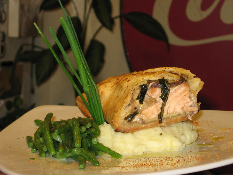 Lay some sprigs of the herbs down the center of the pie crust from left to right, to cover an area the size of the salmon.